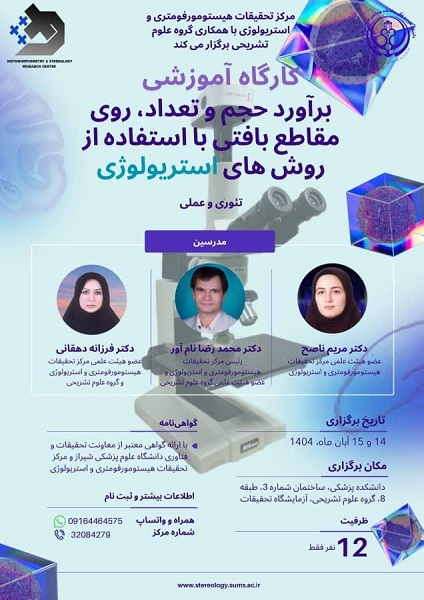 مرکز تحقیقات هیستومورفومتری و استریولوژی با همکاری گروه علوم تشریحی برگزار می کند: کارگاه آموزشی برآورد حجم و تعداد روی مقاطع بافتی با استفاده از روشهای استریولوژی